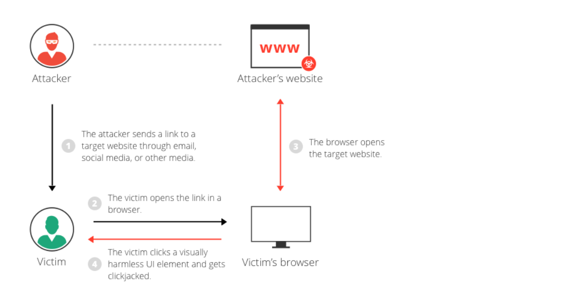 Clickjacking is an attack that tricks a user into clicking a webpage element that is invisible or disguised as another element.